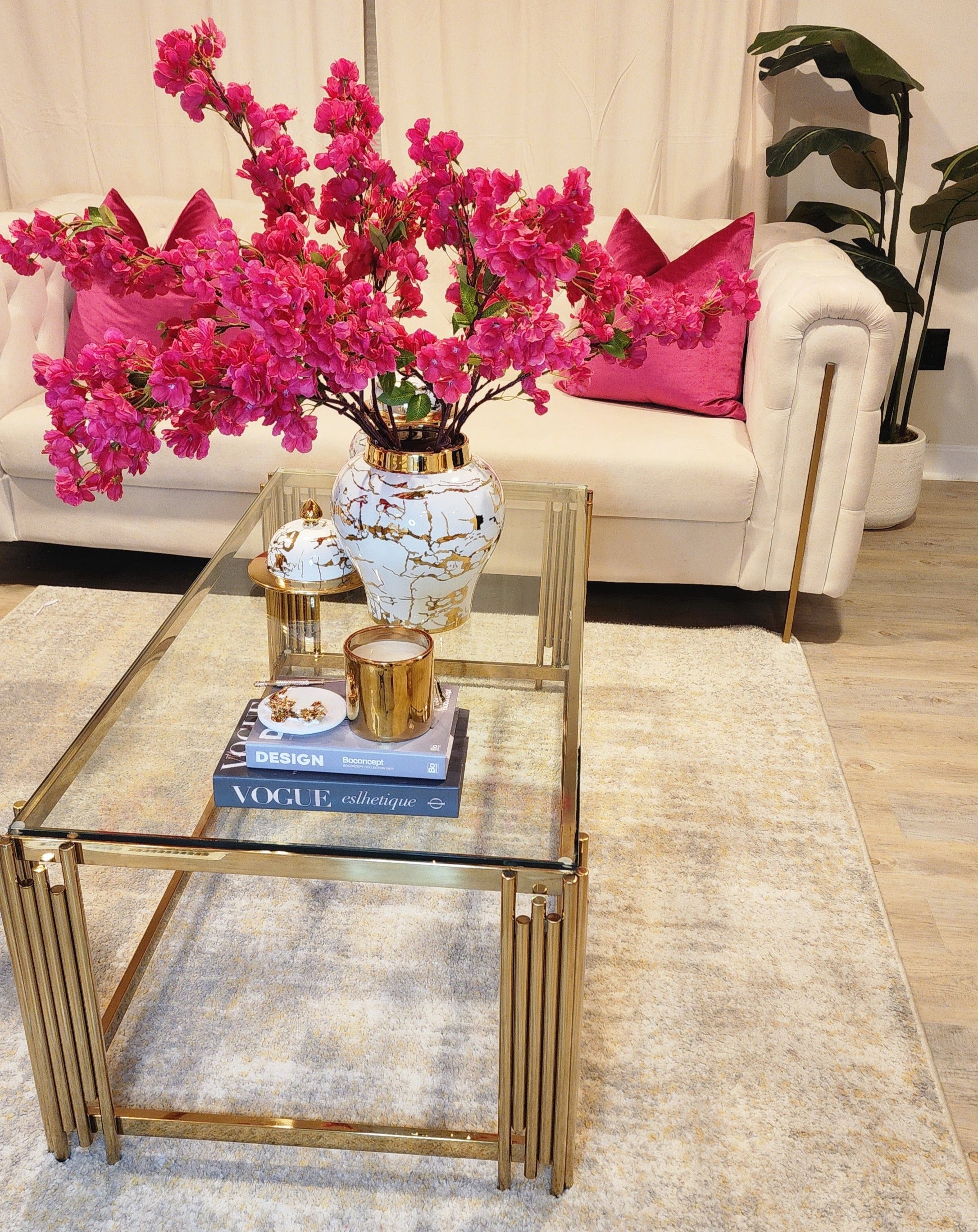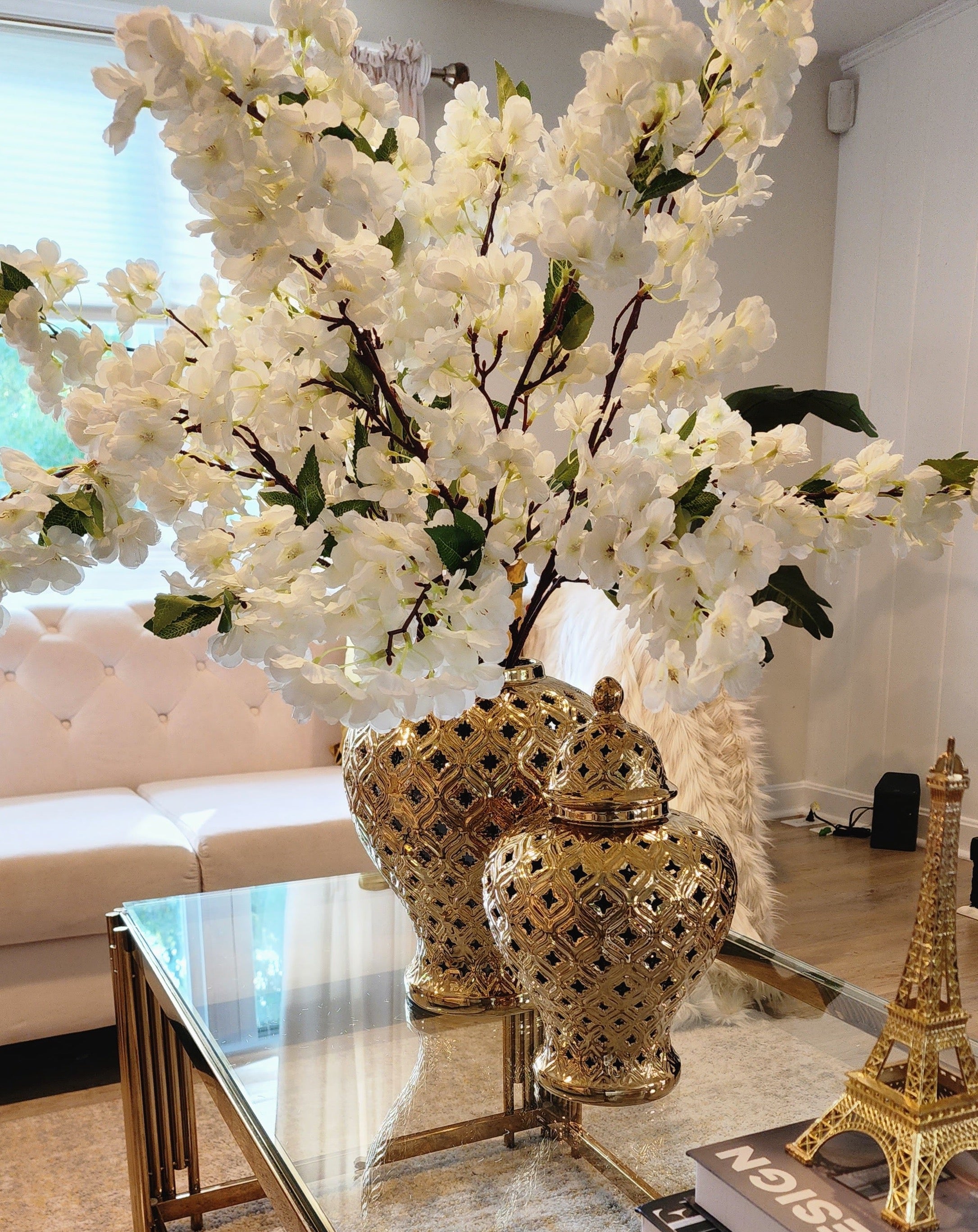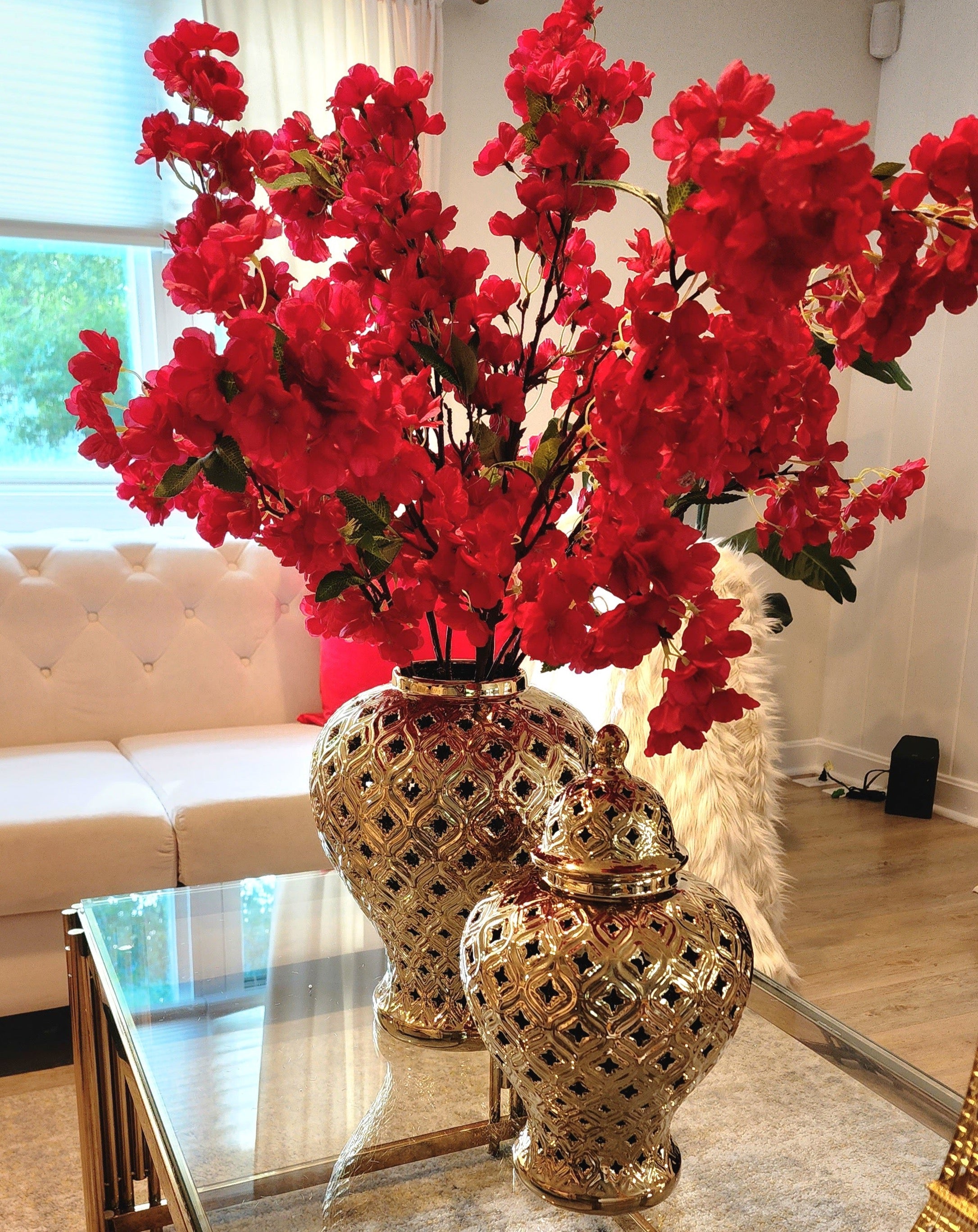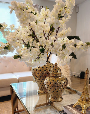 Revamp your home décor with these realistic-looking artificial cherry blossom flowers. This set of four adds a soft, natural beauty to any room throughout the year, no maintenance required. Create a stunning bouquet with the included branches. Length 42 inches.