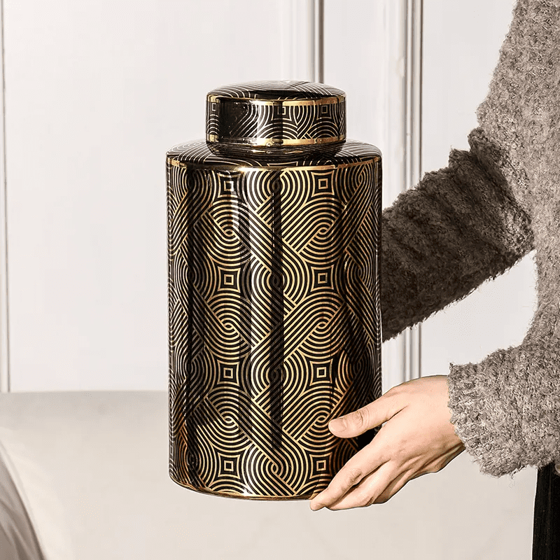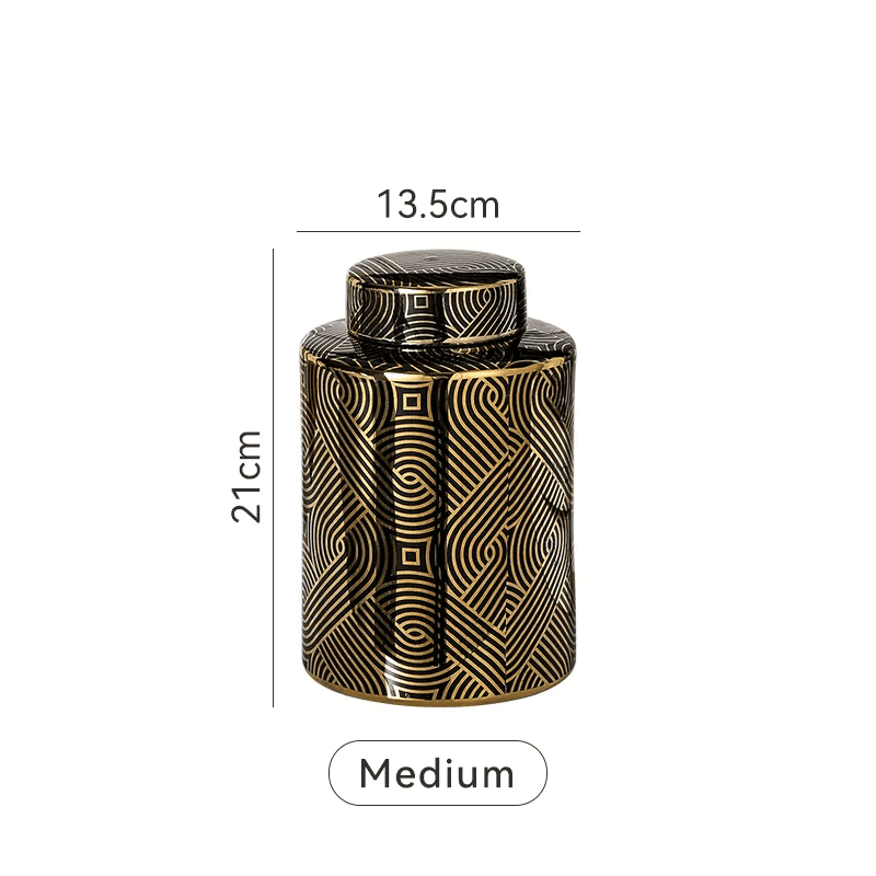 This black and gold porcelain ginger jar & vase set is suitable for display in the living room, bedroom, fireplace area, and corridor. It is very suitable for office or home decoration, dinner, holiday, wedding planning, and other special occasions.