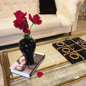 Bring a spark of sophistication to your décor with this elegant small curvy black vase. Its delicate curves and sleek, minimalist design will make an eye-catching addition to any room. Add a touch of class to your home with this timeless vase!