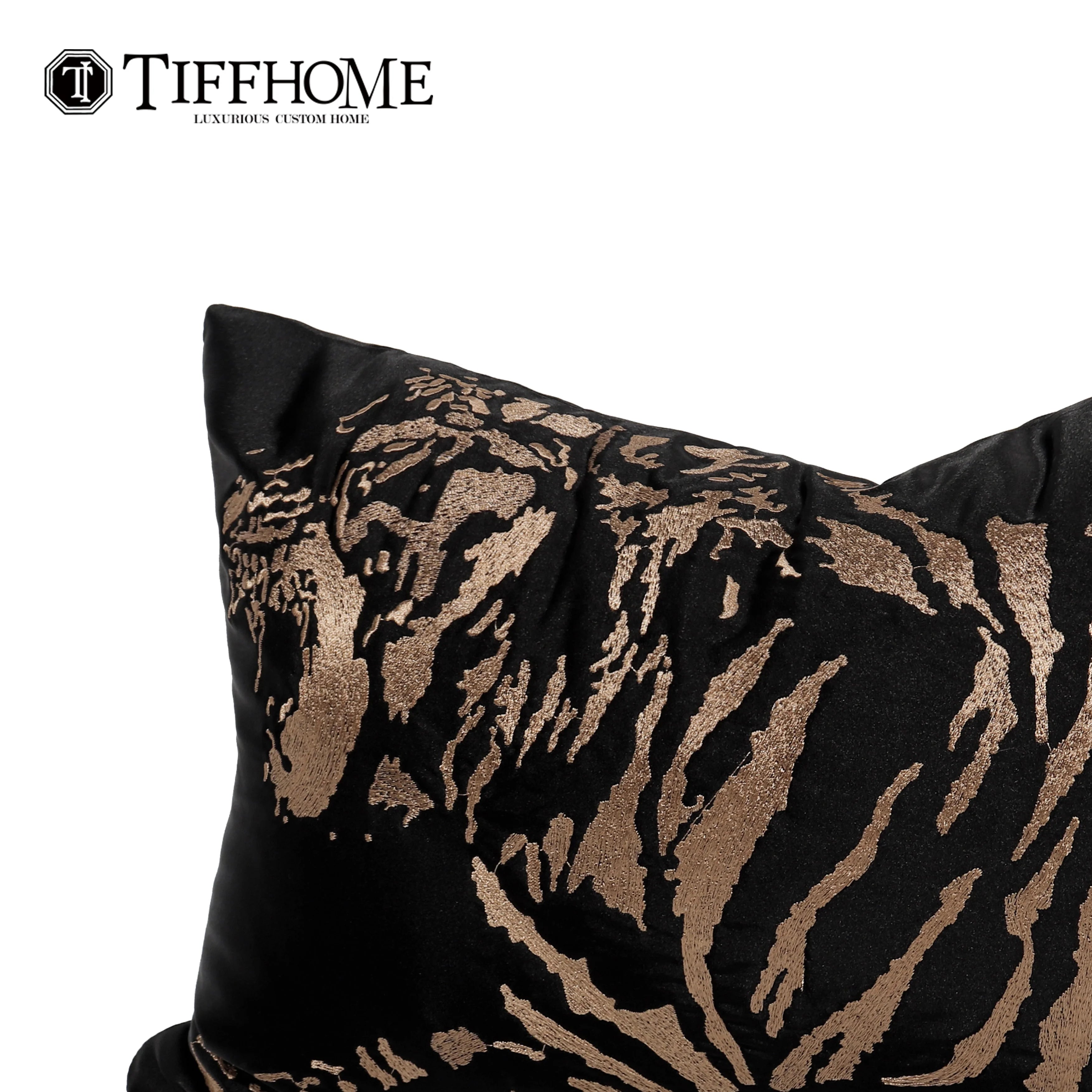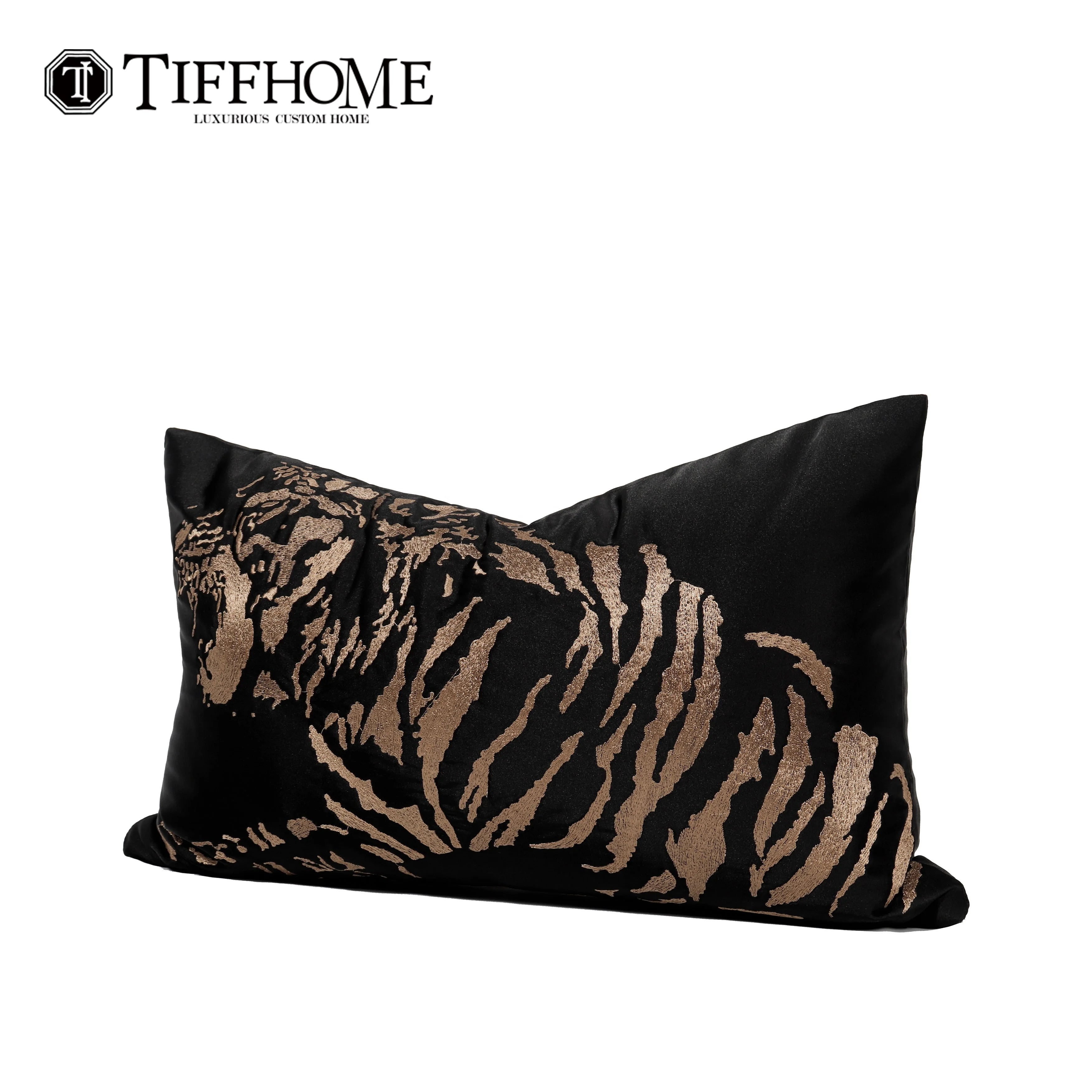 30*50cm Cartoon Tiger Series Decorative Black Cushion Cover Geometric Quilted Embroidery Lovely Rectangular