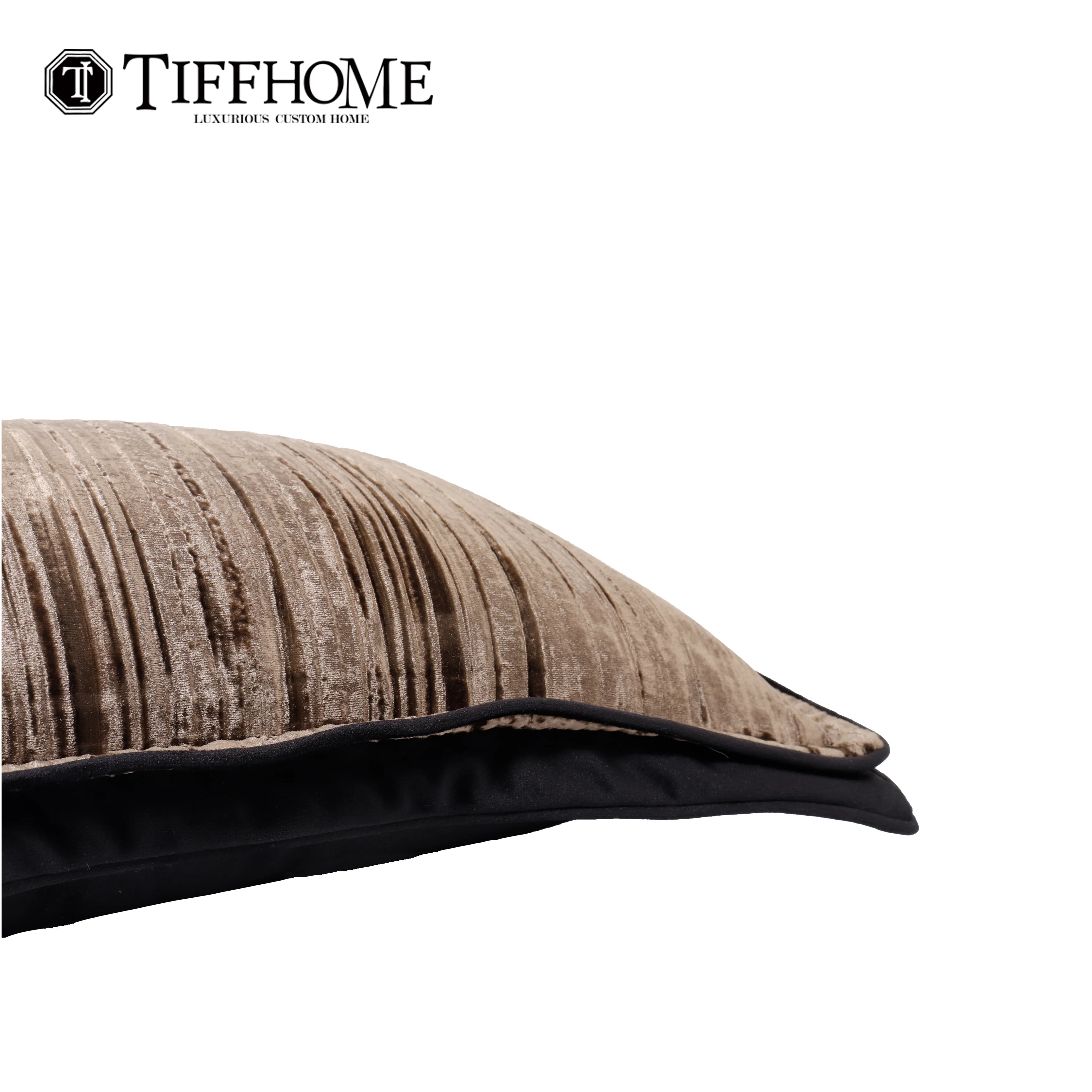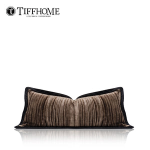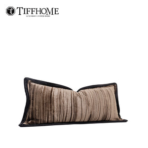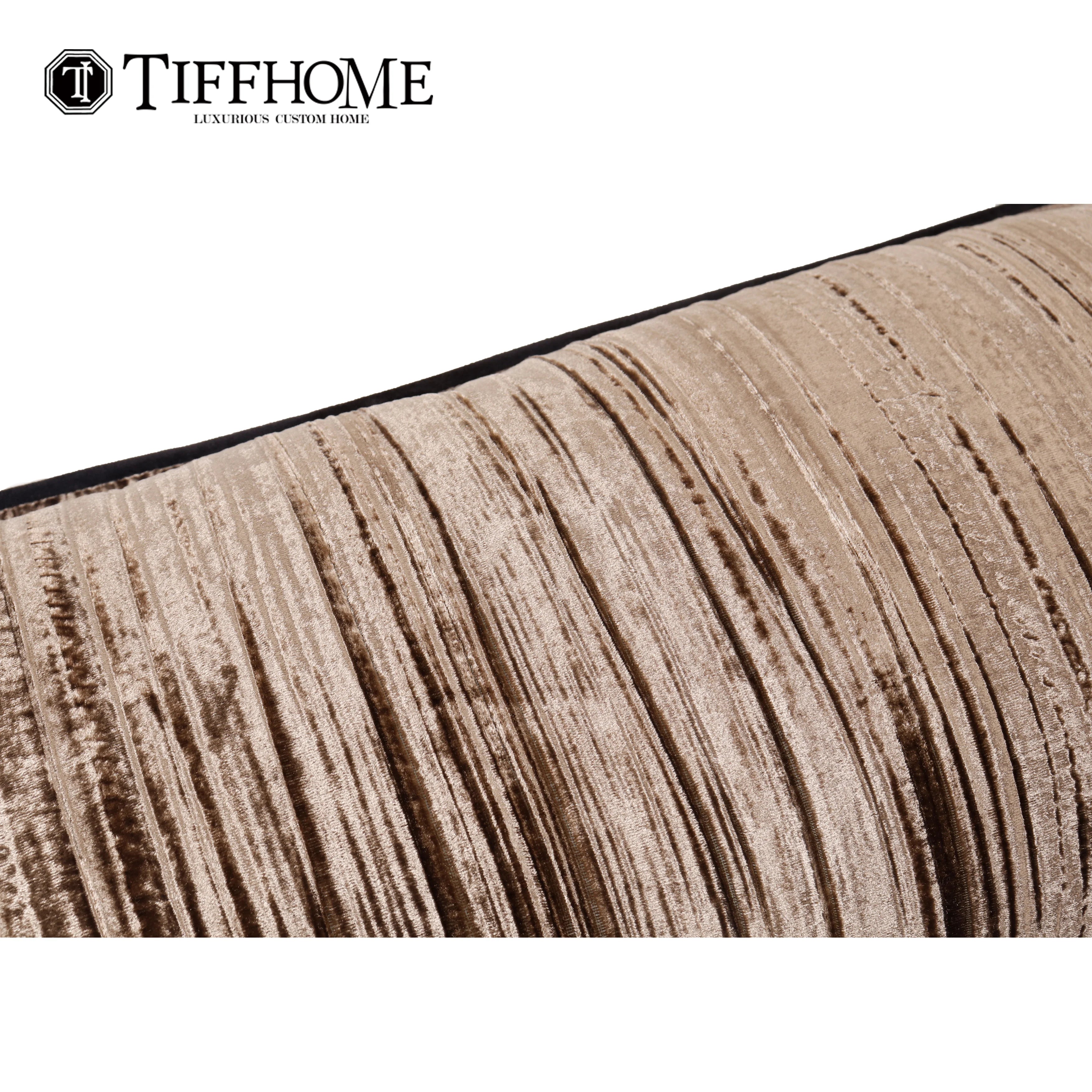Brown Pleated Cozy Lumbar Pillow Organic Velvet Custom Decorative Cushions Modern Portable Light Luxury