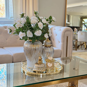 Discover the elegance and charm of our White Ceramic Ginger Jar Vase, adorned with sophisticated gold accents. Perfect for adding a touch of luxury to any space, this exquisite piece combines traditional craftsmanship with modern style. Ideal for home decor enthusiasts and those seeking to elevate their interior with a timeless and chic accessory. Shop now to infuse your living space with a blend of classic beauty and contemporary flair.