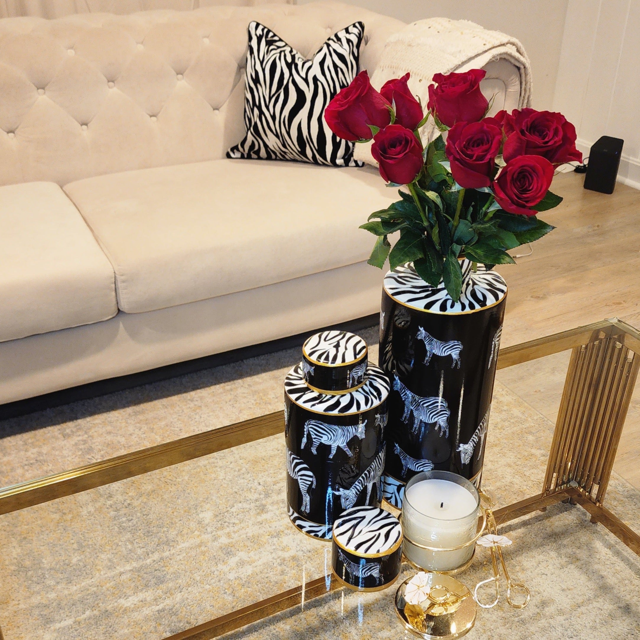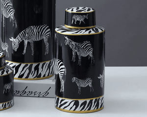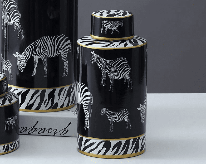 Zebra Print Decorative Ceramic Flower Vase & Storage Jar Set